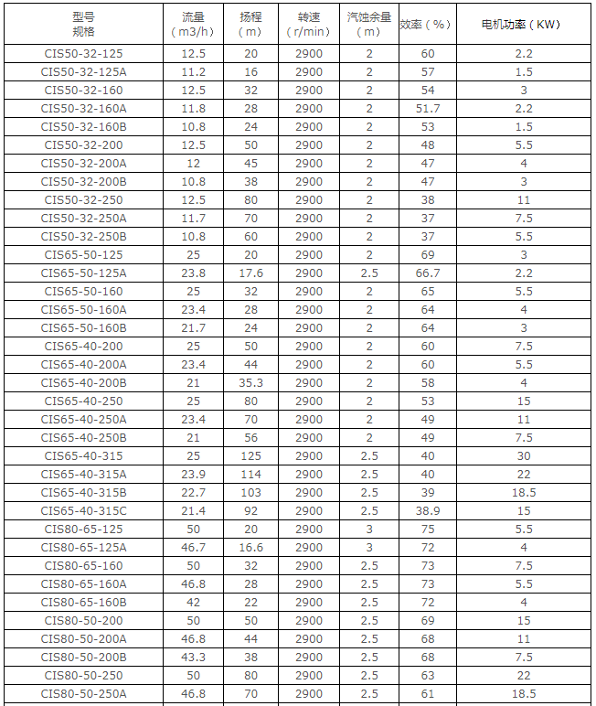 二、CIS系列船用臥式離心泵技術(shù)參數(shù)