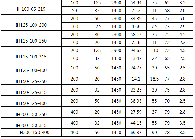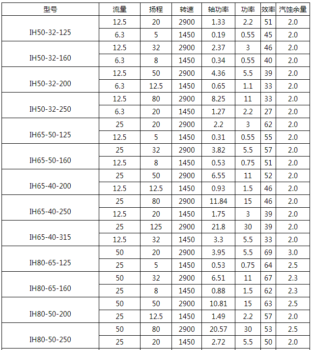 二 IH不銹鋼化工離心泵性能參數(shù)